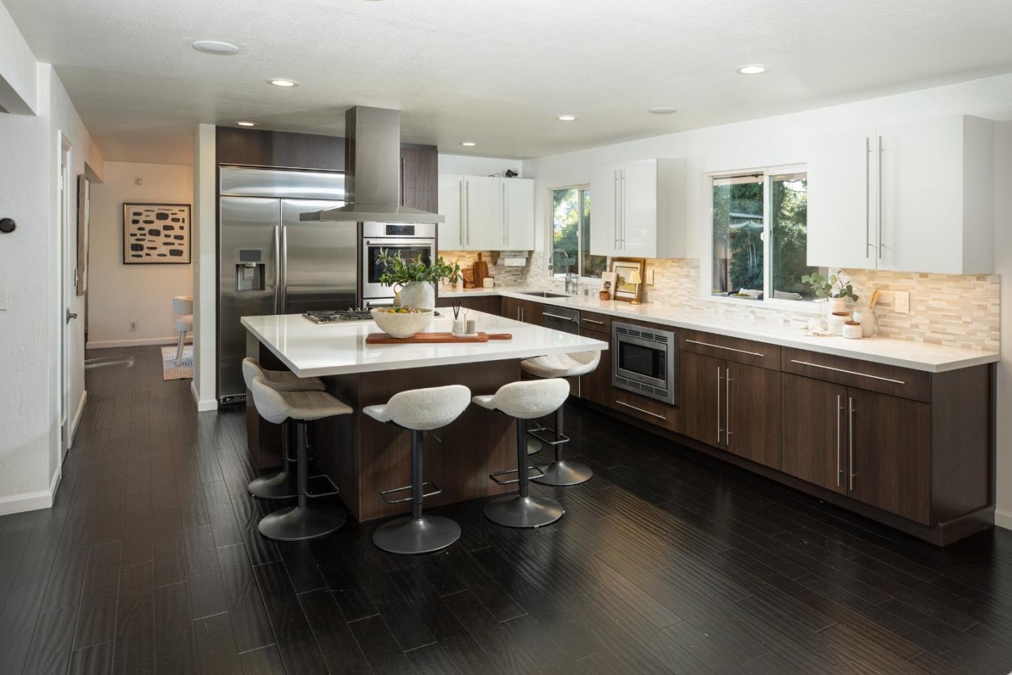 Remodeled 5-Bedroom Home with Resort-Style Backyard in the Highly Sought-After Moreland School District. Beautifully remodeled 5-bedroom, 3-bath home on a private cul-de-sac in desirable West San Jose, featuring an expansive open-concept great room and chefs kitchen with high-end finishes and thoughtful upgrades throughout. The flexible floor plan offers two primary suites a luxurious upstairs retreat with a walk-in closet and spa-inspired bath, plus a convenient downstairs suite ideal for guests, extended family, or multigenerational living. Step outside to a resort-style backyard featuring a newly designed pool, expansive cabana with a full outdoor kitchen, and a private sauna with a waterfall feature, creating a rare spa-like retreat perfect for both entertaining and everyday relaxation. Located in the highly regarded Moreland School District, with Payne Elementary and Prospect High, and just minutes from Santana Row, Westfield Valley Fair, major commute routes, and top private schools including Mitty and Harker.