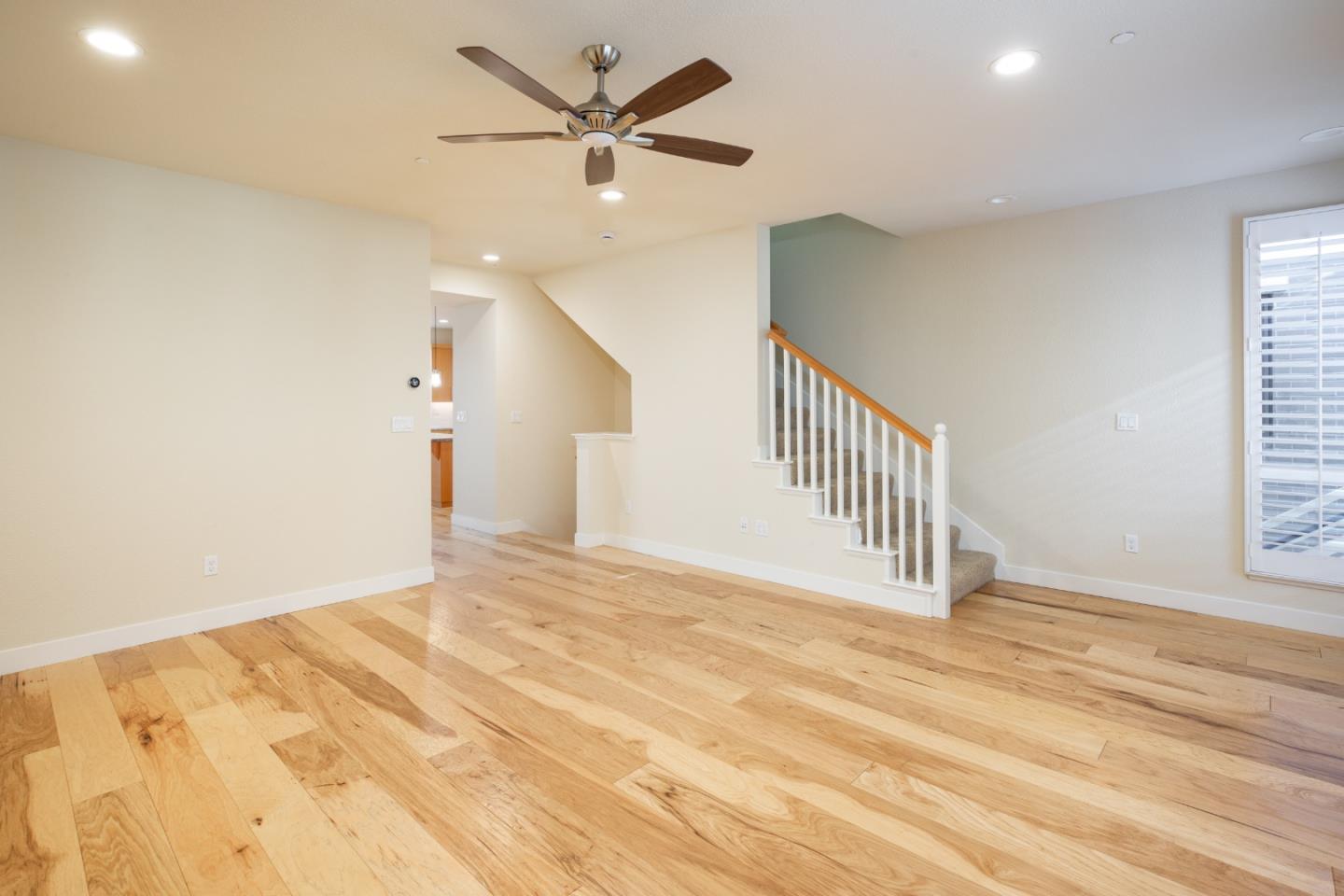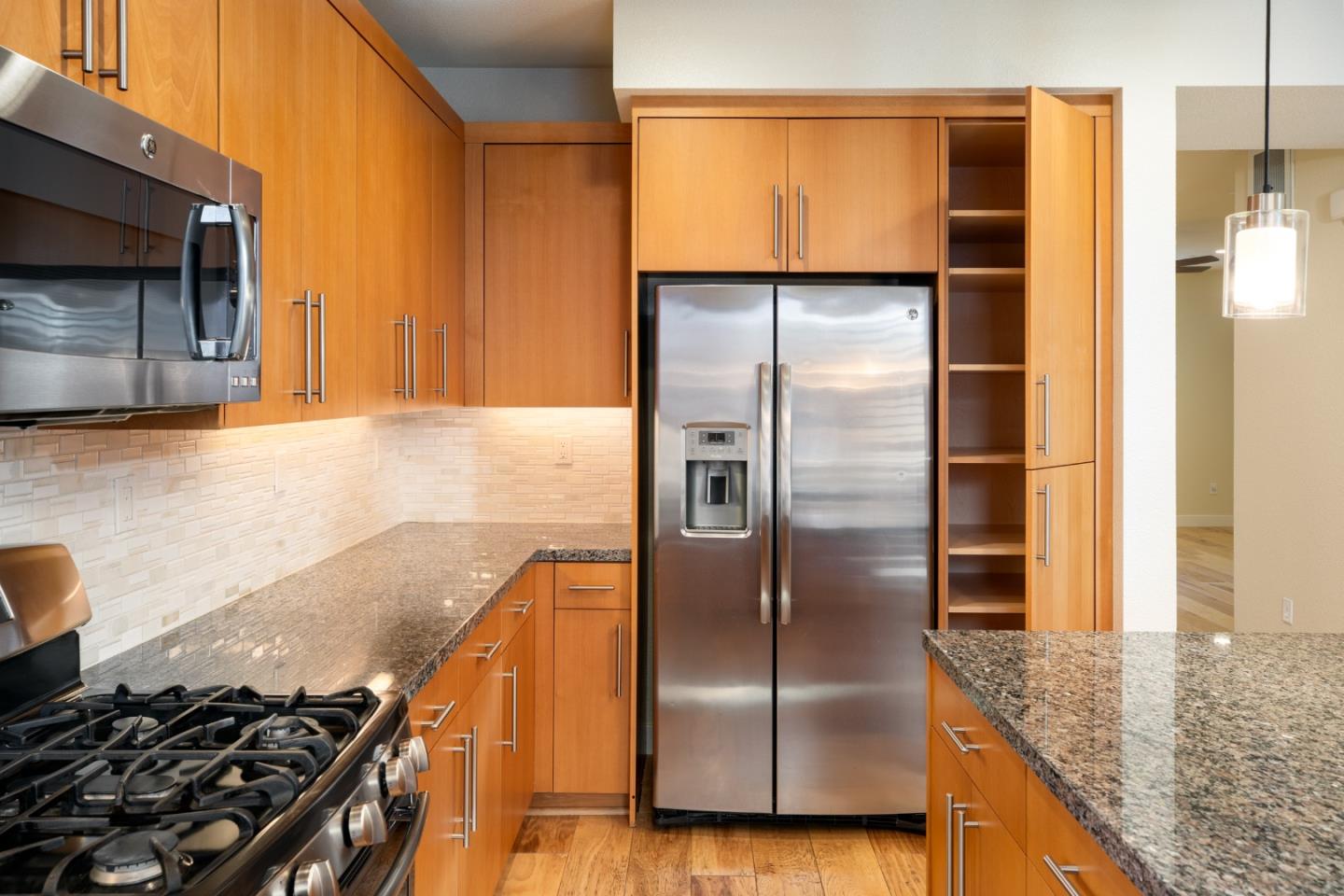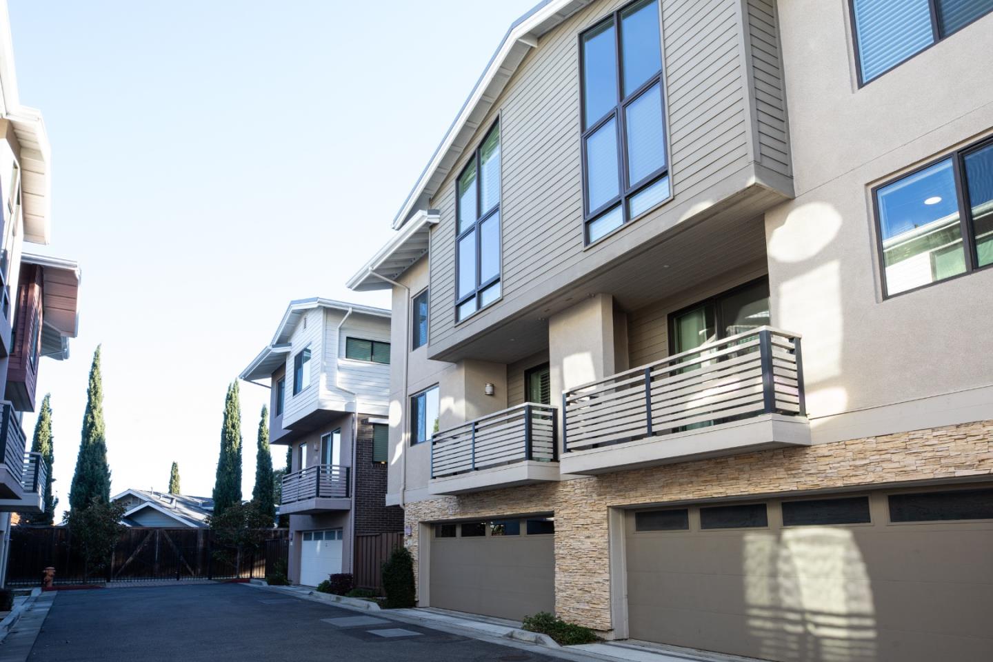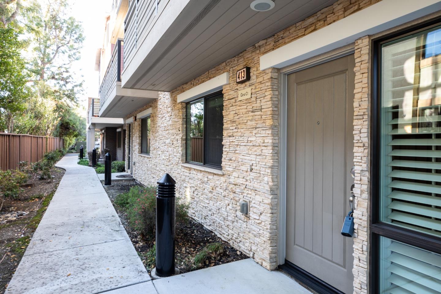 Enjoy this light and bright 10 year new home in turn key condition! Built in 2014 by Classic Communities with designer upgrades this newly painted home offers abundant space, excellent private location and wonderful transporation to downtown Los Altos and downtown Palo Alto as well as the Carmel Village in Mt View. This 4 bedroom and 3.5 bath three-level duette home has just one common wall and ~ 2,120 sq.ft. Second-floor open concept great room with hickory engineered wood flooring. Living room with ceiling fan and door to balcony with steps down to a fenced private yard. Separate dining area off gourmet kitchen has sliding glass door to a deck for al fresco dining. Chef's kitchen features nutmeg cabinetry, granite slab countertops, island w/ breakfast bar, gas range. One master suite on ground floor and a second one on third-floor w/ vaulted ceiling, balcony, walk-in closet, en suite bath in quartz and mosaics, dual-sink vanity, tub, & frameless glass shower. Two more bedrooms, a full bath and a laundry area complete the 3rd floor. Other features: powder room; attached 2-car garage; tankless hot water; central AC; 3 heating zones. Tesla charging station in the garage. Community park w/ BBQ & picnic table. Los Altos Schools! So much to offer!