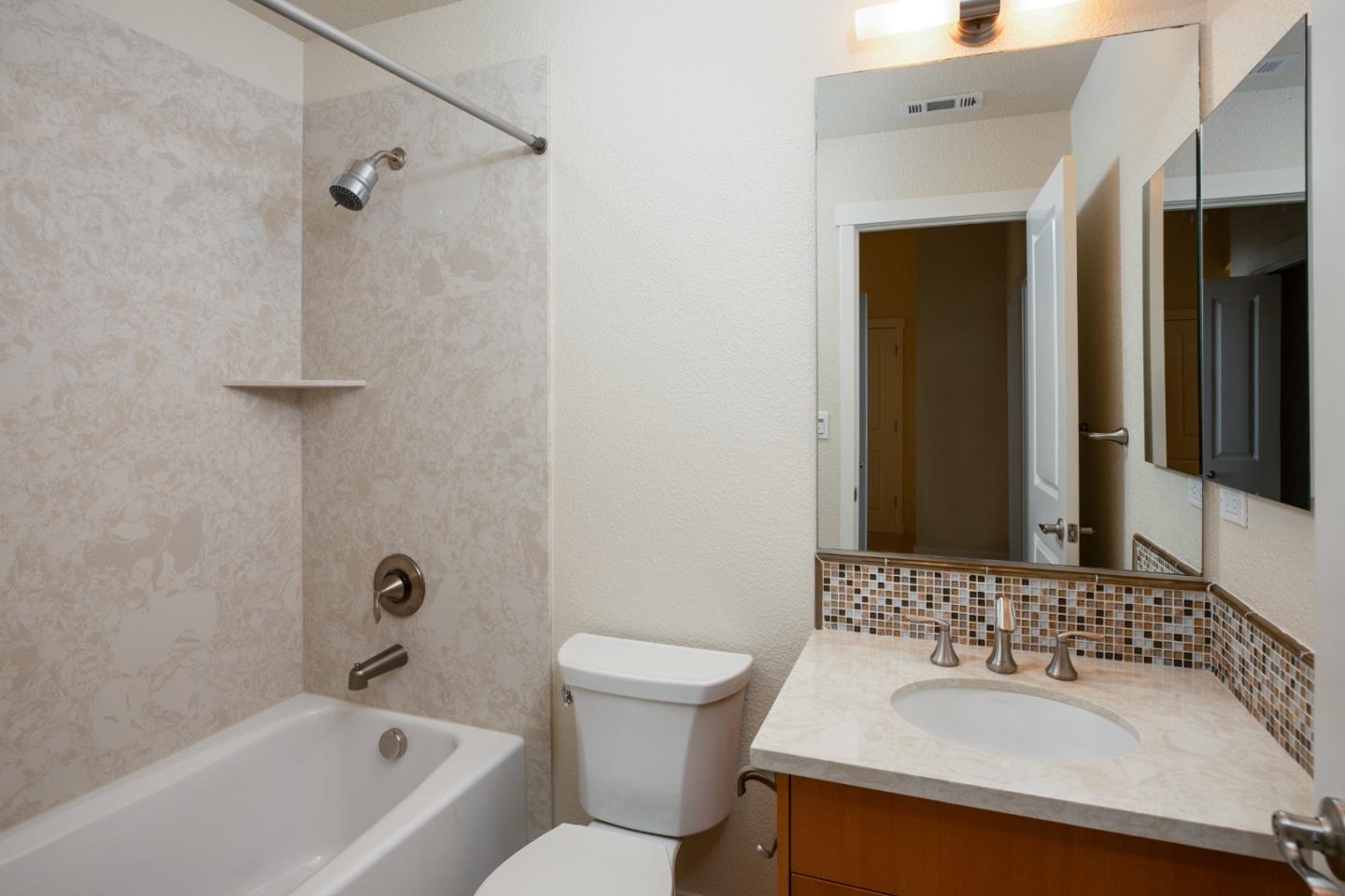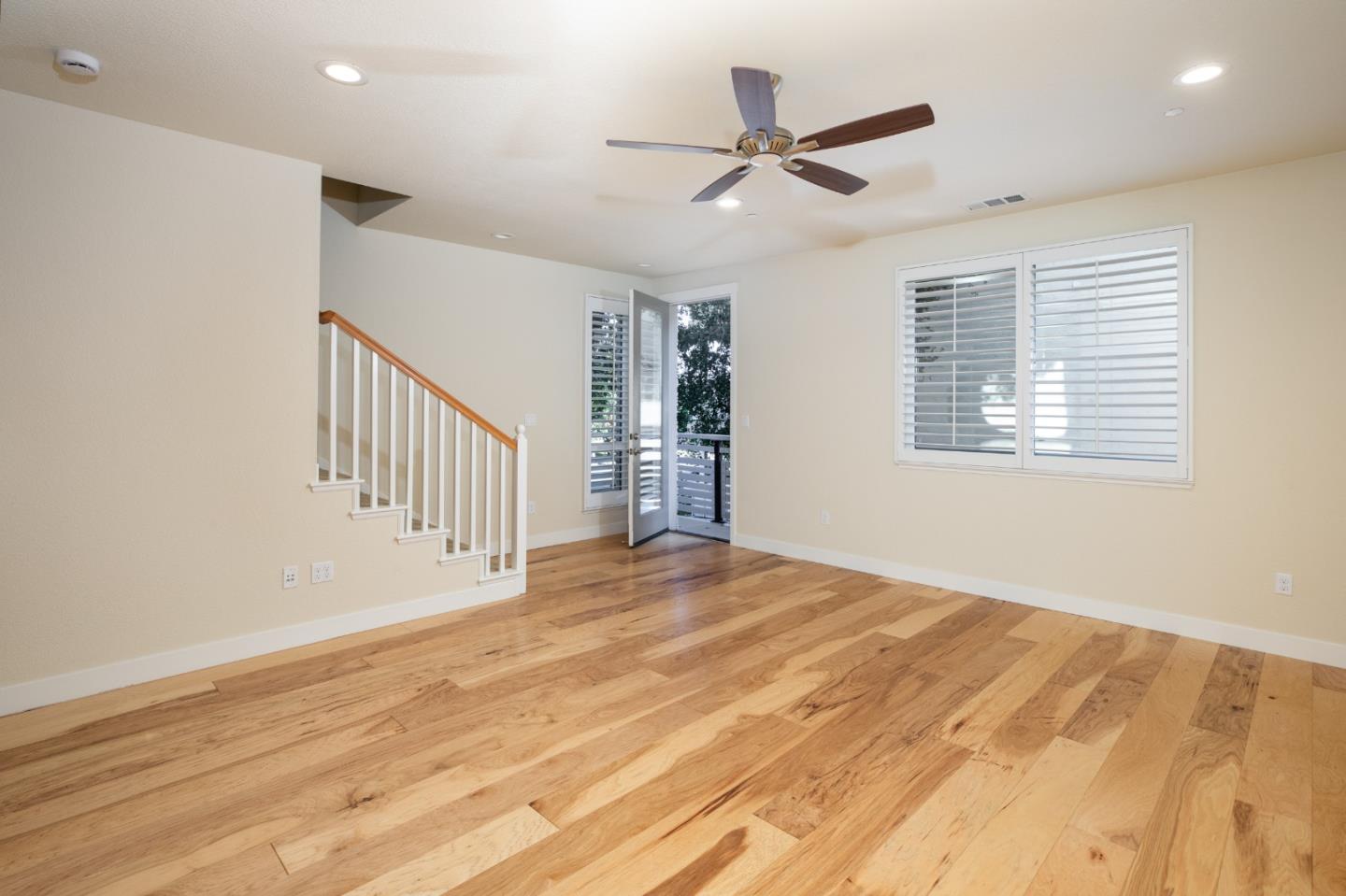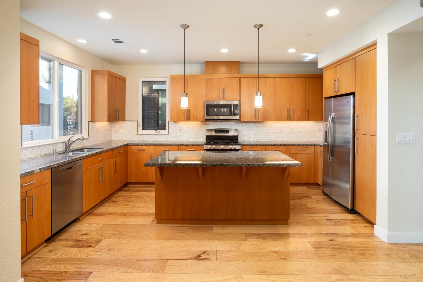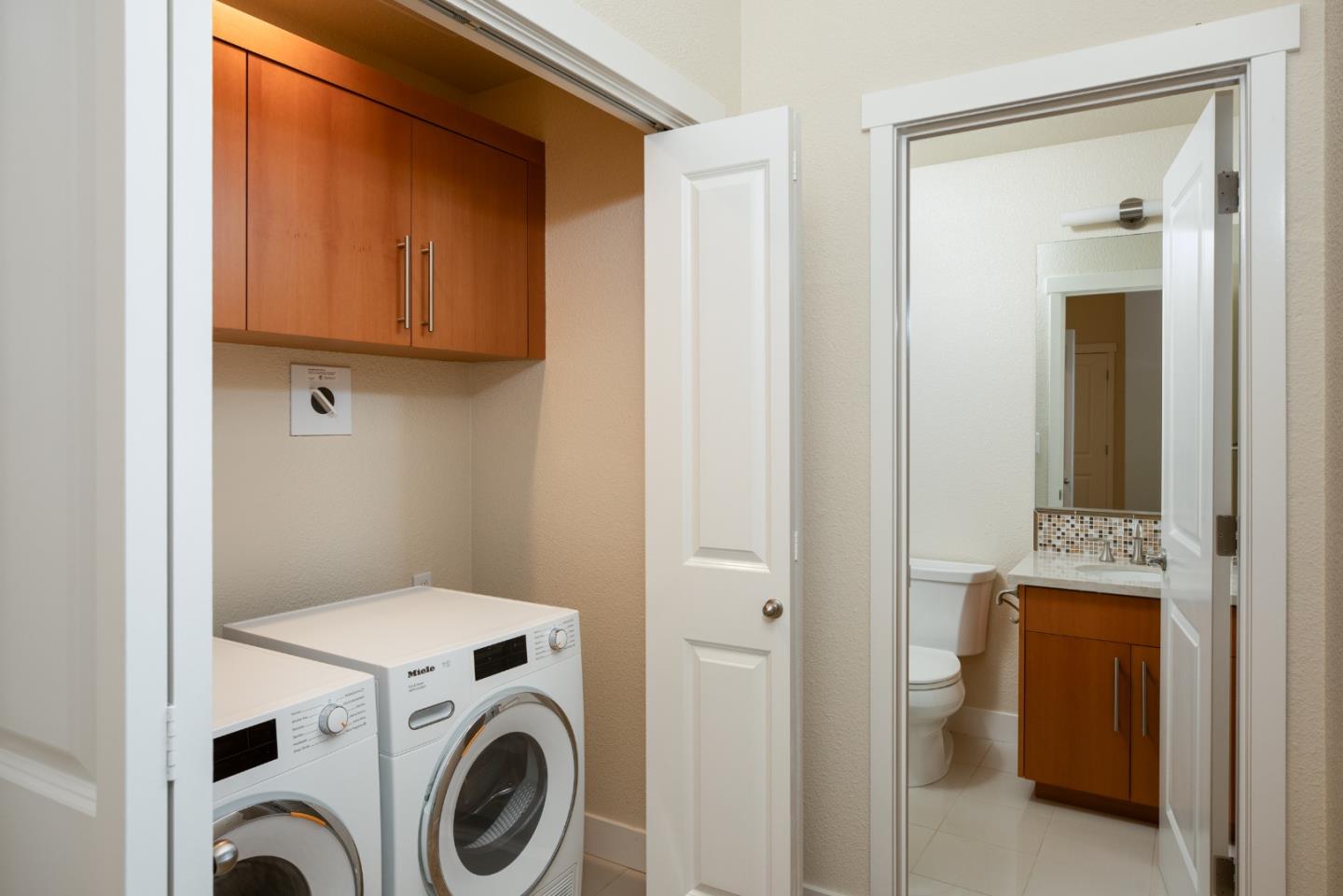 Enjoy this light and bright 10 year new home in turn key condition! Built in 2014 by Classic Communities with designer upgrades this newly painted home offers abundant space, excellent private location and wonderful transporation to downtown Los Altos and downtown Palo Alto as well as the Carmel Village in Mt View. This 4 bedroom and 3.5 bath three-level duette home has just one common wall and ~ 2,120 sq.ft. Second-floor open concept great room with hickory engineered wood flooring. Living room with ceiling fan and door to balcony with steps down to a fenced private yard. Separate dining area off gourmet kitchen has sliding glass door to a deck for al fresco dining. Chef's kitchen features nutmeg cabinetry, granite slab countertops, island w/ breakfast bar, gas range. One master suite on ground floor and a second one on third-floor w/ vaulted ceiling, balcony, walk-in closet, en suite bath in quartz and mosaics, dual-sink vanity, tub, & frameless glass shower. Two more bedrooms, a full bath and a laundry area complete the 3rd floor. Other features: powder room; attached 2-car garage; tankless hot water; central AC; 3 heating zones. Tesla charging station in the garage. Community park w/ BBQ & picnic table. Los Altos Schools! So much to offer!